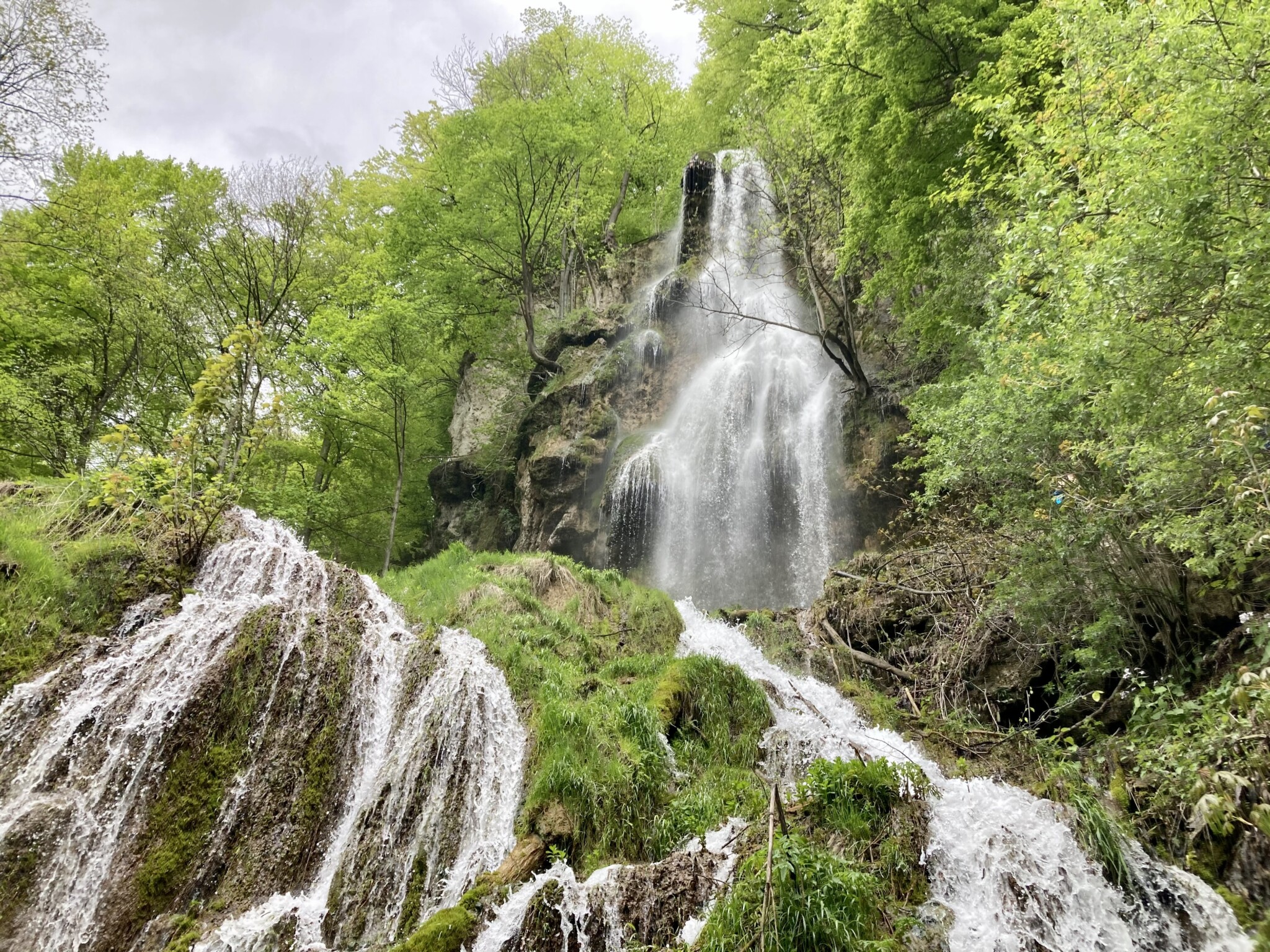 Bad Urach Şelalesi, 37 metrelik yükseklikten akmakla birlikte, debisi yağmur suları ve kar yağışına bağlı olarak saniyede 70 ile 420 litre arasında değişen romantik bir şelale. Bu bölgeye, daha önce kızak kaymaya geldiğimi hatırlıyorum. Yani aslında burası kışın kar sporları ile de ünlü bir bölge.