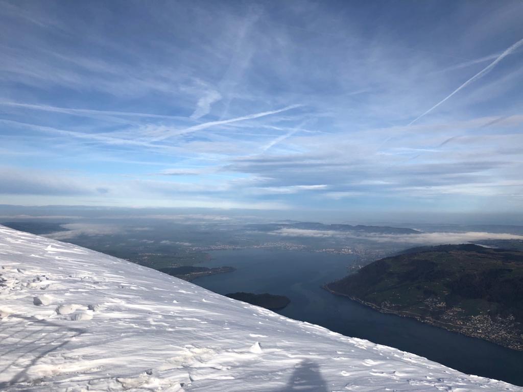 Rigi tepesine vardığında seni etkileyici bir manzara karşılayacak. Aslında eğer yaz mevsiminde gittiysen bir önceki durakta inerek tepeye yürüyüş yollarından birini kullanarak da çıkabilirsin. Biz Ocak ayında gitmiş olmamıza rağmen yürüyüş yollarını kullananlar vardı. Rigi Kulm durağına vardığında tam tepe noktasına varmak için birkaç yüz metre daha tırmanman gerekecek ve sonra 1798 metre yükseklikten Luzern’i seyredebilirsin…