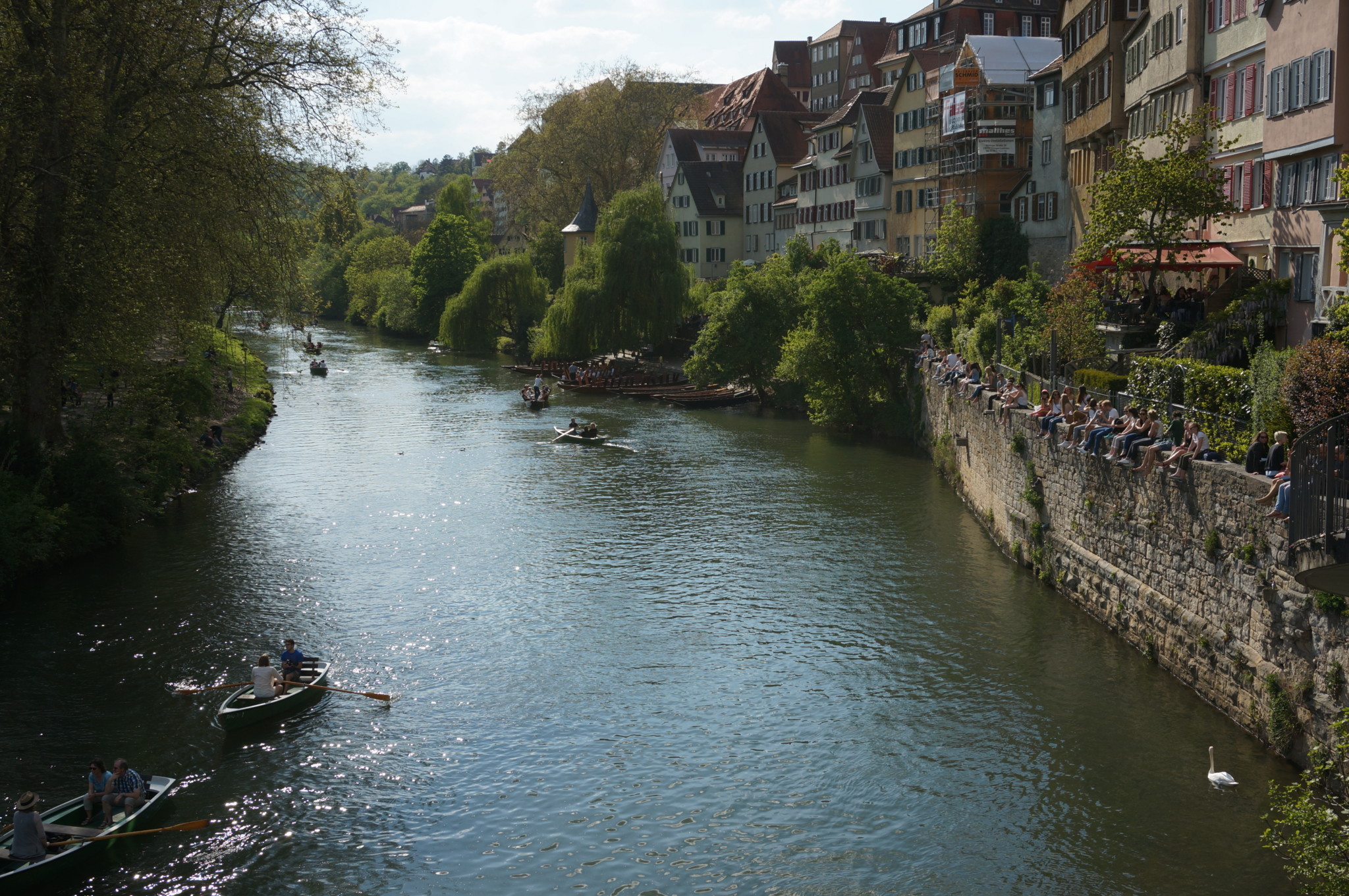 Tübingen, üniversitesi ve öğrencileri ile de ünlü bir şehir. Dolayısıyla tüm şehir aktiviteleri genç nüfusa göre planlanmış. Örneğin ortadaki adada bir örtü serip akan suyu dinleyebilirsin. Veya nehirde uzun kayıklarla yapacağın bir gezi sana iyi gelebilir. Yeteri kadar enerjin varsa Schloss Hohentübingen kalesine çıkıp kale içinde veya manzara eşliğinde bir şeyler içebilirsin. Kalenin tarihi 11. yüzyıla kadar dayanıyor ve kaleye giriş ücretsiz. Kalenin içinde oturmak ve bir şeyler içmek mümkün.