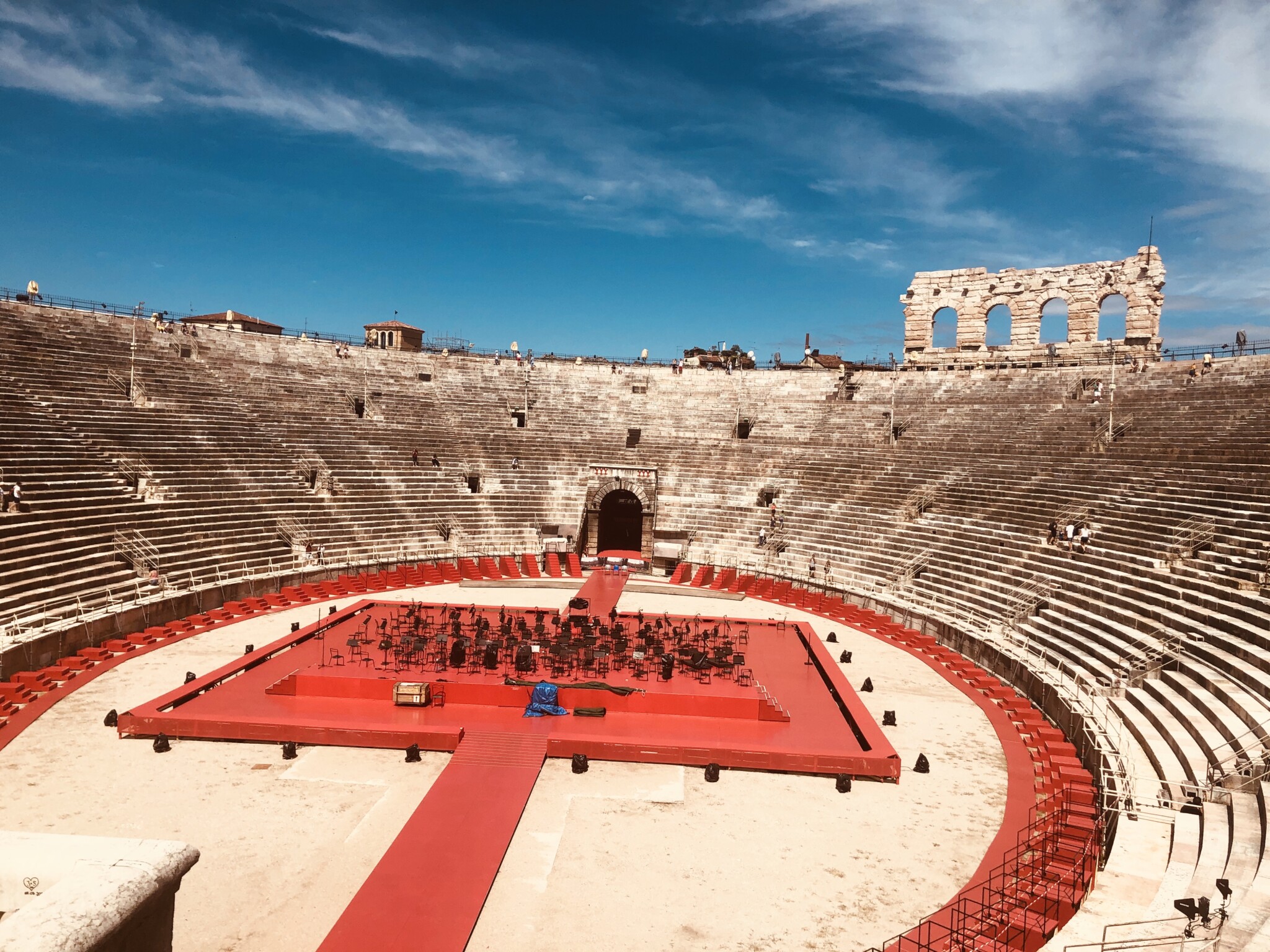 Roma’daki Kolezyum ve Capuadaki arenadan sonra dünyanın üçüncü büyük arenası olarak biliniyor. 113×152 metrelik bir alan ve 22.000 kişi kapasiteye sahip. Üstelik hala da konserlere ev sahipliği yapıyor. Milattan sonra 30 yıllarında yapılan bu arena, o zamanlar Verona’nın dışına yapılmış olan bu arena aslında ilk yapıldığı yıllarda daha büyükmüş fakat dış duvarları 1117 yılında meydana gelen bir depremde yıkılmış. Ancak akustiği ve 22.000 kapasitelik bölümü hala kullanılıyor. Yaz aylarında ise festivallere ev sahipliği yapıyor.